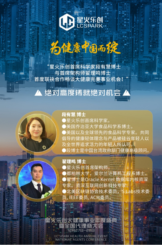 本次盛典汇聚了顶级专家阵容,星火乐创CEO季娟女士,美国乔治亚大学食品科学系博士、中国台湾政府部门健康高级顾问、星火乐创首席科学家段有慧女士,ISF国际注册营养师、中央电视台特约顾问专家王旭峰先生,都柏林大学计算机工程系博士、星火乐创首席架构师翟理鸣先生,国家级心理咨询师、公共营养师龚、星火乐创首席健康管理培训师先生,国际培训师、星火乐创首席服务专家赵红丹女士等嘉宾出席活动,共襄这场商业智慧和创新思维的巅峰盛典。